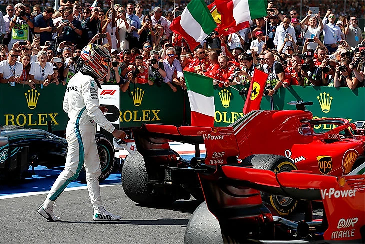 За Австрией последовал Гран-при Великобритании — и Хэмилтону снова не удалось победить: он проиграл старт с поула, а затем его торпедировал Кими Райкконен. К финишу четырехкратный чемпион все же приехал вторым, и с учетом всех обстоятельство должен был порадоваться, но вместо этого проявил эмоции и ушел с послегоночного флэш-интервью. Когда же микрофоны журналистов все-таки его достали, Хэмилтон опрометчиво обвинил пилотов «Феррари» в намеренных столкновениях, обозвав маневр финна «новой тактикой» соперников. Естественно, Льюиса никто не поддержал (кроме своей команды — и то лишь в самые «горячие» первые часы), и в последствии ему пришлось оправдываться фразой «иногда мы несем полную чушь, но потом становимся умнее».