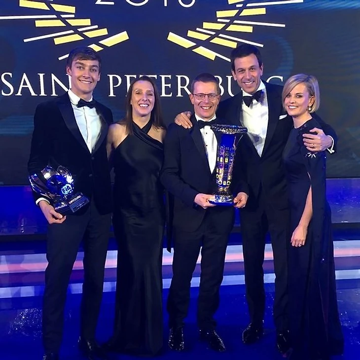 Там же приз за победу в «Формуле-2» выдали молодому гонщику «Мерседеса» и новичку «Уильямса» Джорджу Расселлу.