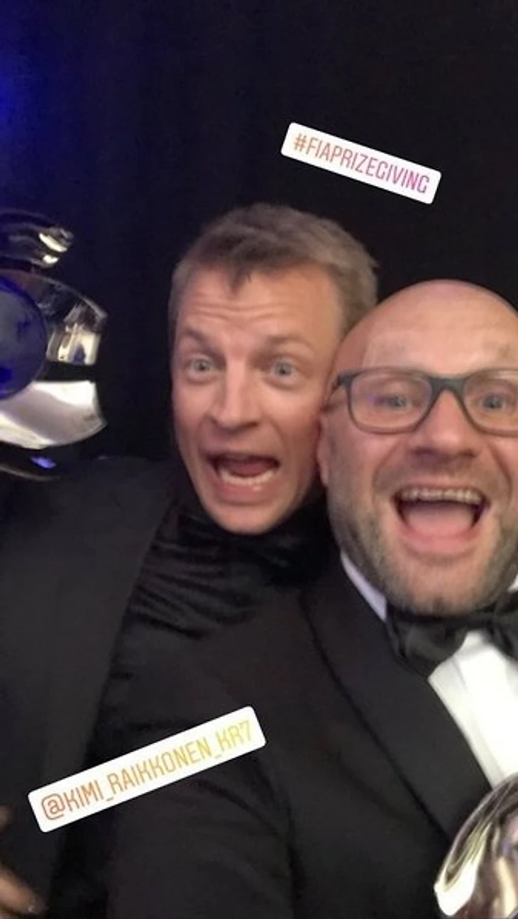Когда Райкконен вышел на улицу после награждения, холодный воздух не помог и его не отпустило. Доказательства снова легко достаются из сториз его жены.