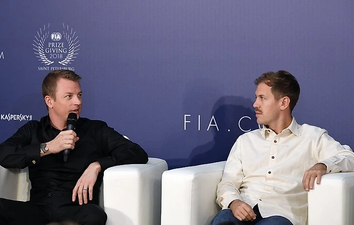 Себастьяну Феттелю и Кими Райкконену тоже выдали трофеи за второе и третье места соответственно.