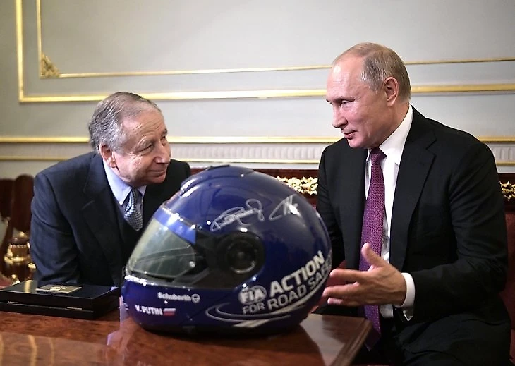 Но еще до вручения трофеев президент федерации Жан Тодт встретился с главой России Владимиром Путиным и вручил ему именной мотоциклетный гоночный шлем.
