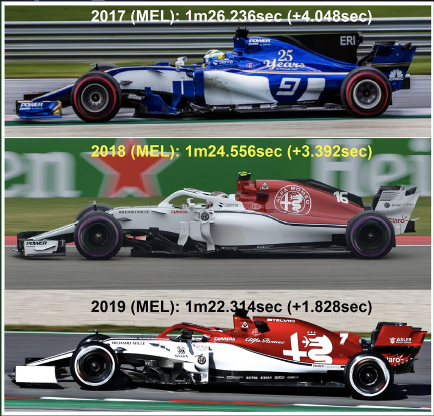 Год назад бывший «Заубер» тоже продемонстрировал рост результатов, сбросив 0,7 секунды и подобрался к «Мерседесу».