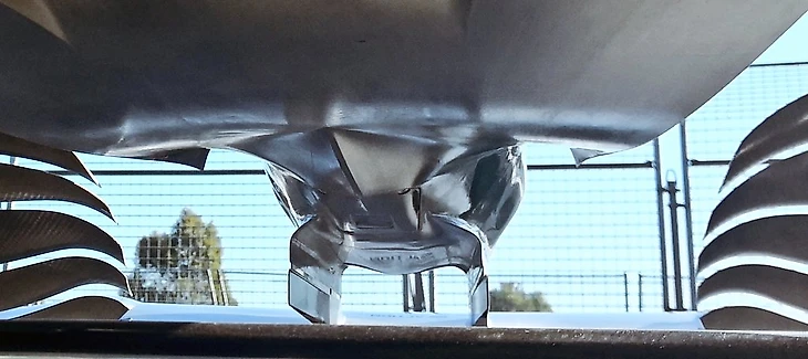«Мерседес» экспериментирует с зубчатыми креплениями (также их тестировали на переднем антикрыле) для повышения производительности. Тем не менее, с такими структурами нужно обращаться аккуратно: если сделать их слишком большими или агрессивными, оно вместо «причесывания» потока превратится в генератор хаотичных маленьких торнадо.