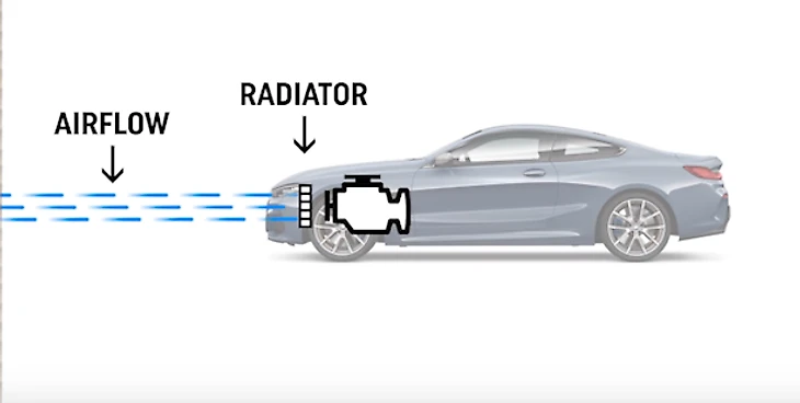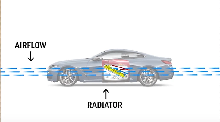 В обычной машине радиатор смонтирован в передней части. Он отбирает тепло из мотора и передает его в окружающую атмосферу.