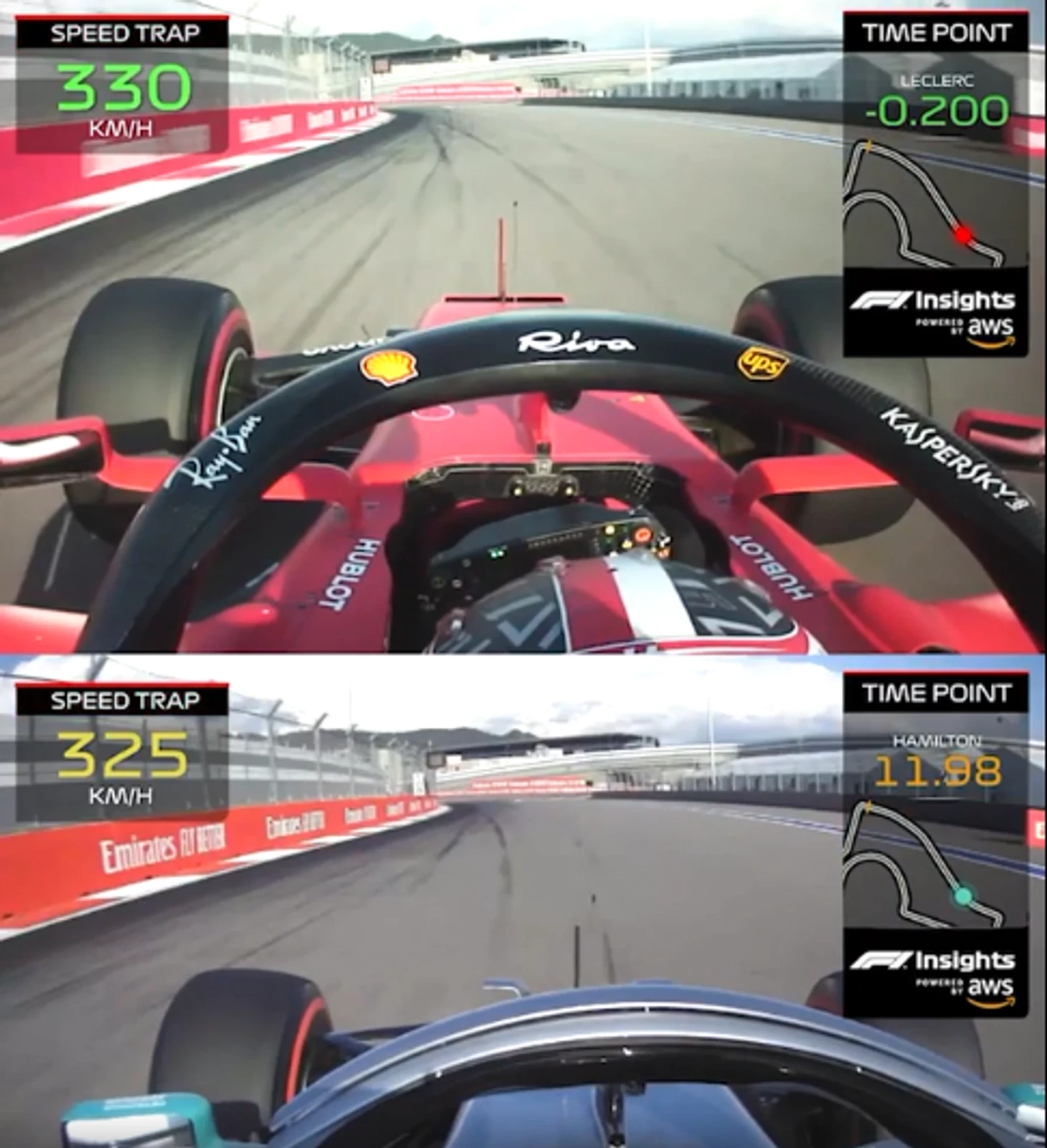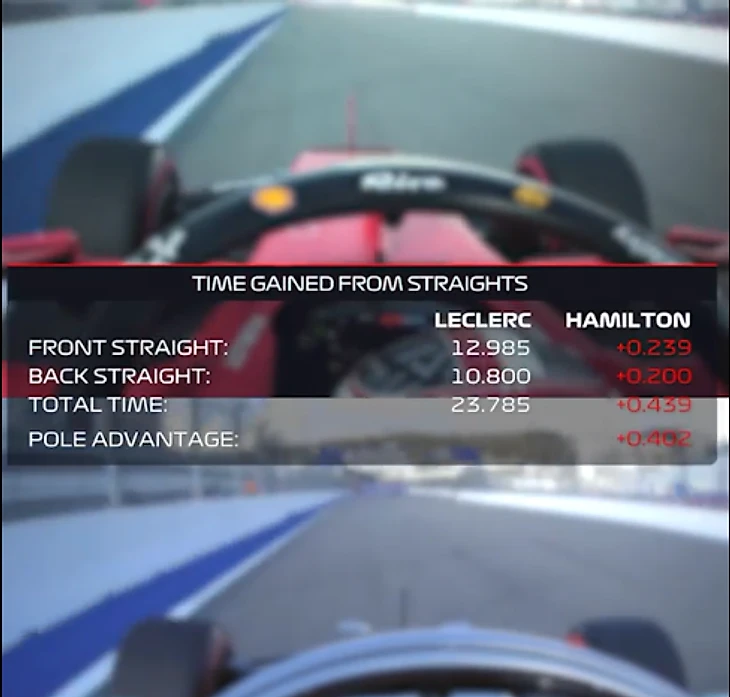 Но, судя по версии официальных соцсетей «Ф-1», в Сочи поул Леклеру подарила именно все та же скорость на прямых. Точнее, шикарный темп всего на двух отрезках.