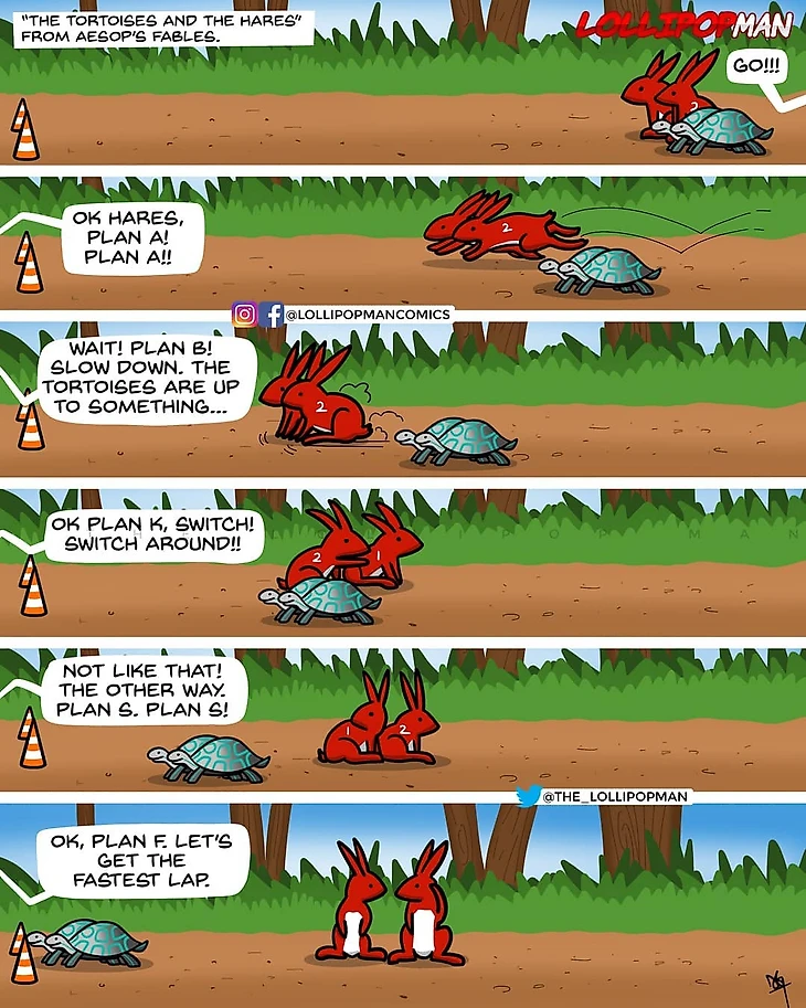Особенно выделился автор комиксов об автоспорте Lollipopman: он вспомнил известную древнегреческую басню Эзопа о зайце и черепахе.