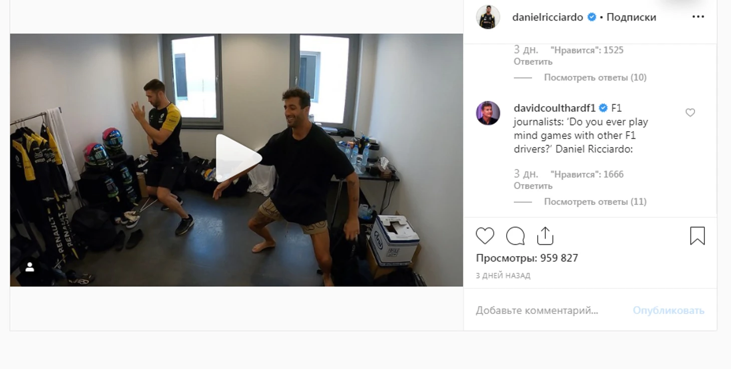 «Формульные журналисты: «Вы когда-нибудь играли в психологические игры с другими пилотами «Формулы-1»? Даниэль Риккардо: это», – прокомментировал бывший пилот «Уильямса», «Макларена» и «Ред Булл» Дэвид Култхард.