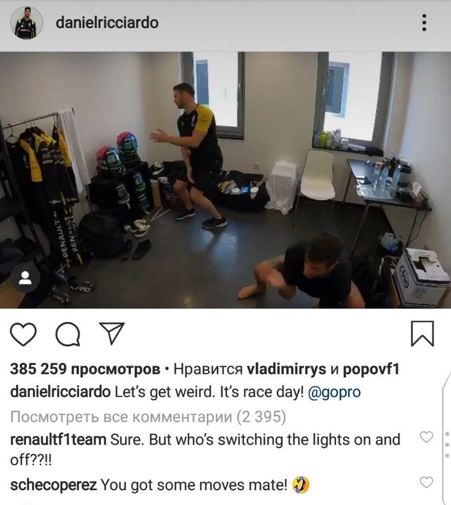 «Давайте ударимся в странности. Гоночный день!» – написал в инстаграме австралиец – и к нему в комментарии пришли коллеги!