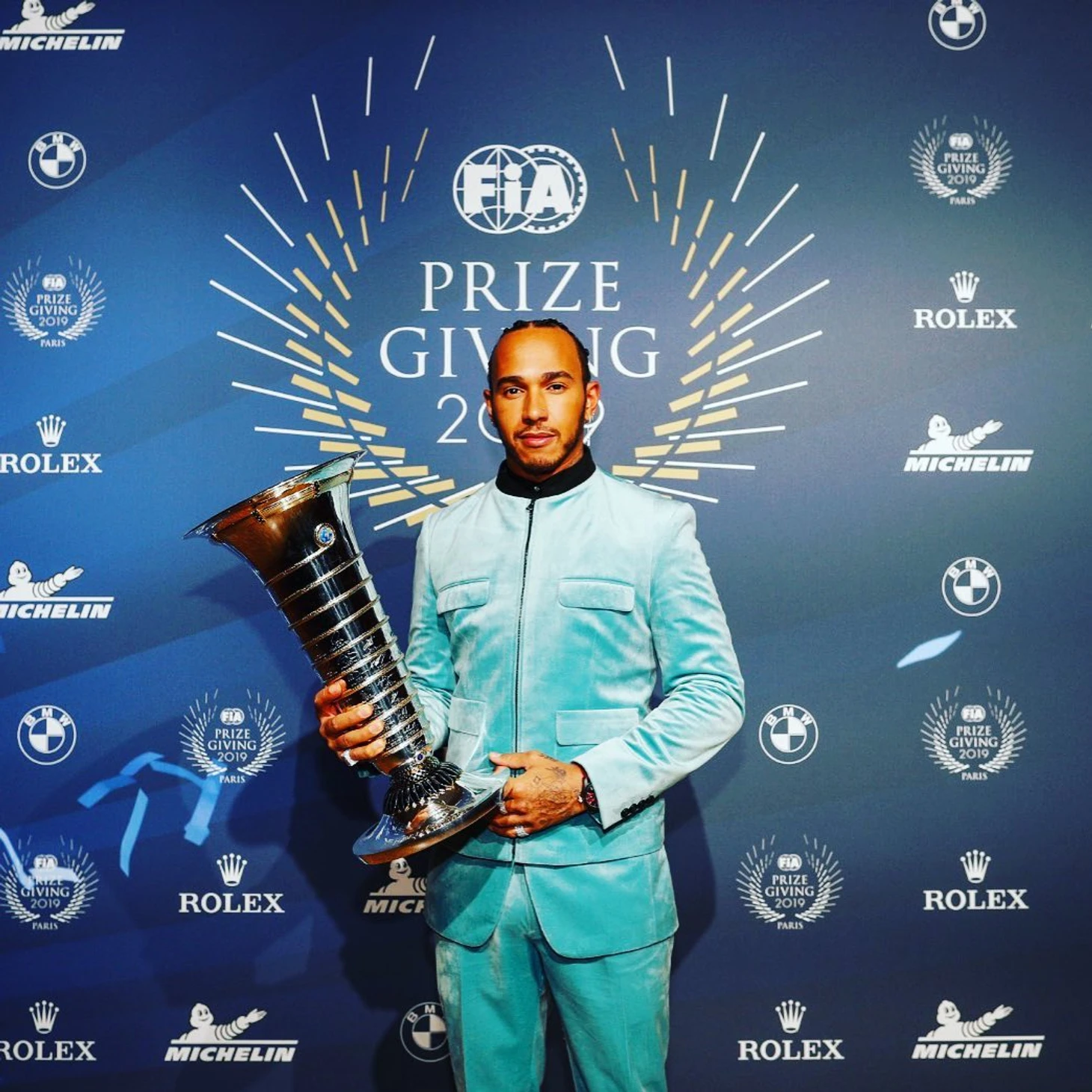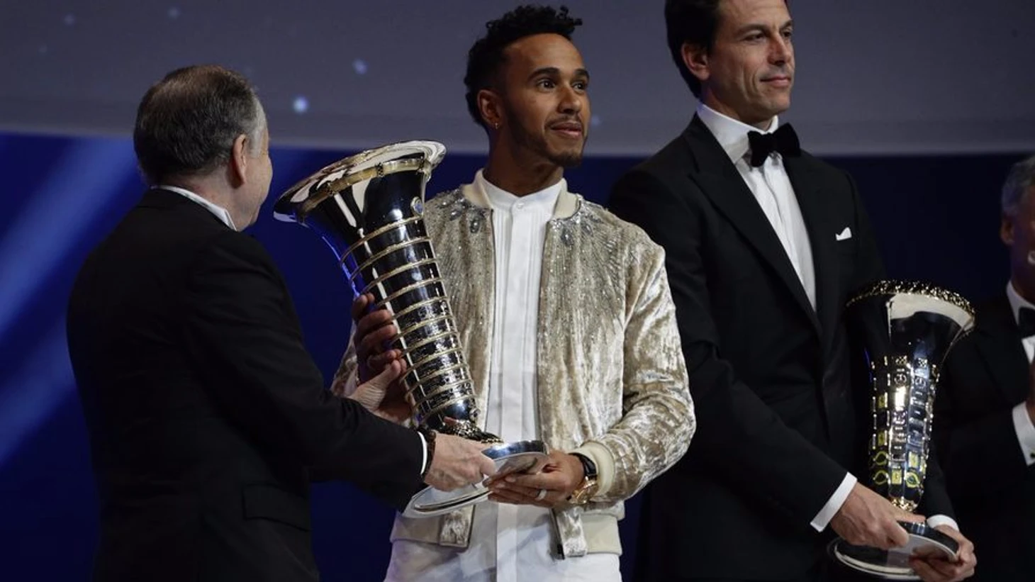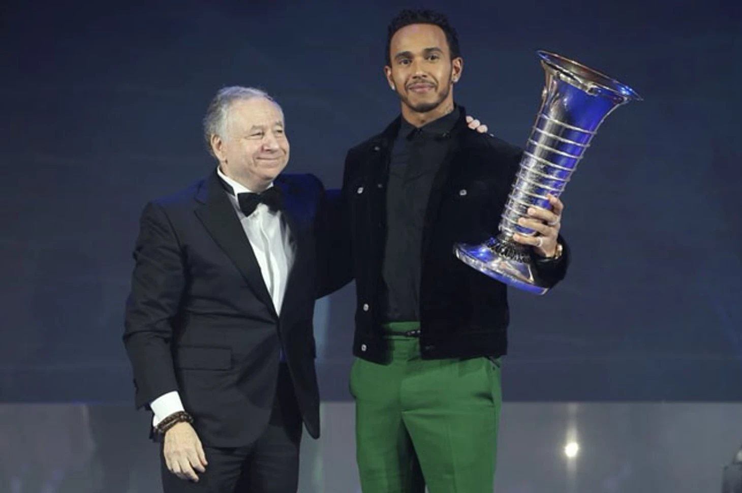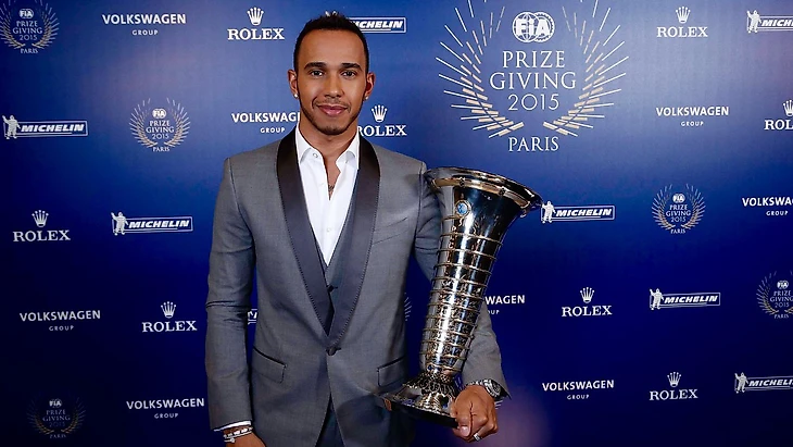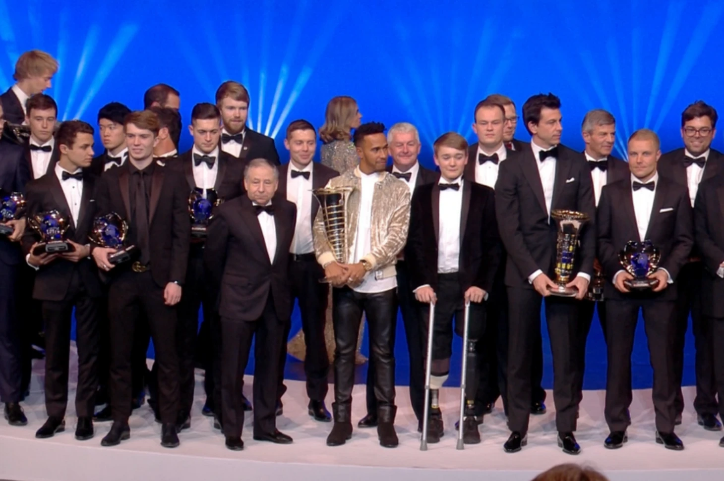 На вручение кубков лучшим гонщикам года все приходят в одинаковых костюмах. Cамовыражается только Хэмилтон