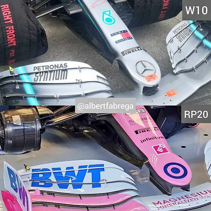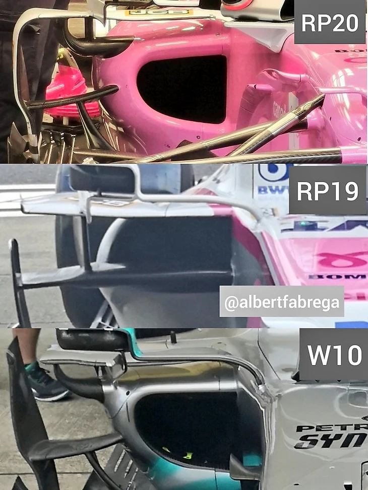 Можете сравнить боковые части новой RP20, RP19 из 2019-го и чемпионского W10. И попробовать найти отличия.