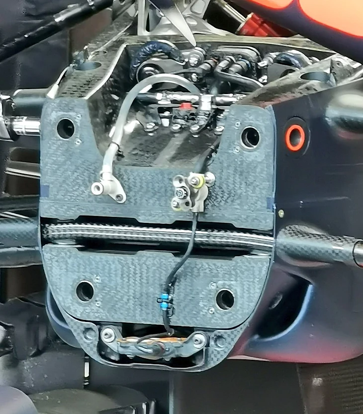 Также раньше здесь находился пилон, управлявший колесами. Однако теперь здесь ничего нет – «Ред Булл» сделал монокок длиннее и перенес все чуть дальше внутрь шасси, на 8 сантиметров вглубь от того места, где они обычно находятся.