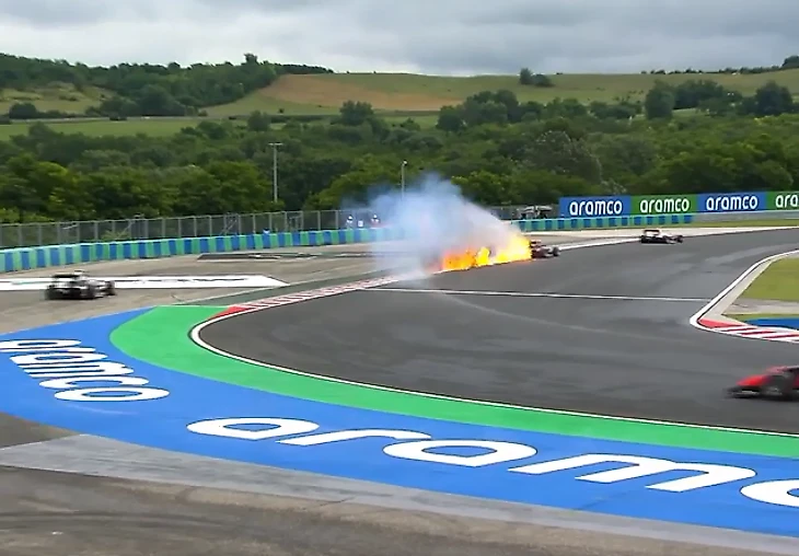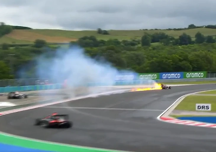 Правда, заезд пришлось прервать красными флагами: первый поворот «Хунгароринга» из-за масла превратился в настоящий каток.