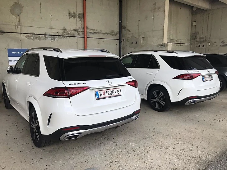 Слева – машина Льюиса Хэмилтона, справа – Валттери Боттаса. Как видите, ни о каком равенстве в «Мерседесе» нет и речи: шестикратному чемпиону выдали GLE 350D мощностью 250 л.с., максималкой 226 км/ч и стоимостью 6,5 миллионов рублей (90 тысяч долларов).