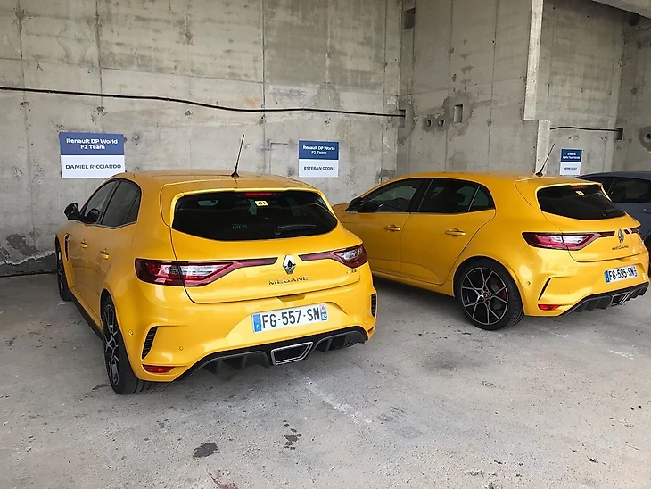 Желтые Megane GT для RS Trophy – с турбомотром на 300 л.с., максималкой в 262 км/ч и стоимостью 55 тысяч евро – одинаковые и у Даниэля Риккардо с зарплатой в 25 миллионов долларов, и у новичка Эстебана Окона. К слову, последний даже поспорил с шефом команды: если поднимется на подиум до конца сезона – оставит машину себе.