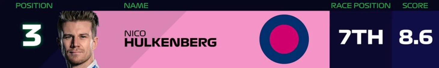На официальном сайте «Формулы-1» после каждого Гран-при выпускают чарт лучших гонщиков. Его формирует объединение пяти экспертов на основании пяти ключевых характеристик без влияния уровня машины. Оценки экспертов сводят в единый «гоночный рейтинг», с помощью которого в процессе сезона высчитают топ-10 по сезону, а также средний балл ко конкретному этапу.