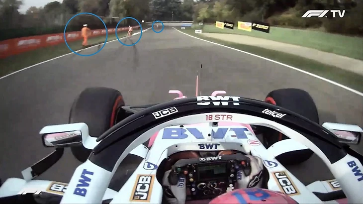 Но еще больше накосячил Ланс Стролл: судя по записям с его бортовой камеры, он гнал весь круг на полную и при приближении к работавшим на треке маршалам почти не сбросил скорость. Самый опасный сектор пилот «Рейсинг Пойнт» проехал за 28,048 секунды – на семь секунд быстрее Райкконена, на 3,5 секунды быстрее Феттеля и лишь на секунду медленнее собственного быстрейшего времени на данном участке за весь Гран-при.