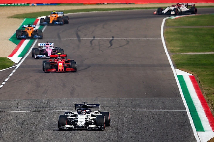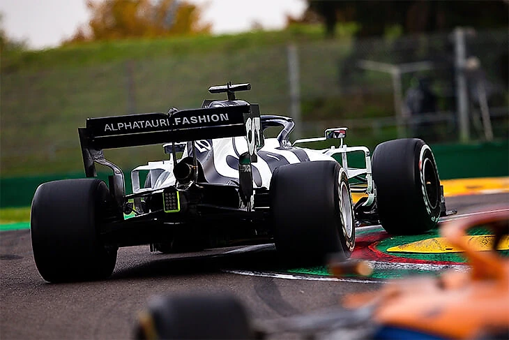 Даниил Квят больше всего запомнился на Гран-при Эмилии-Романьи в Имоле прежде всего фантастическим броском на рестарте: №26 за полкруга разделался с Серхио Пересом, Алексом Албоном и Шарлем Леклером и взлетел на четвертое место.