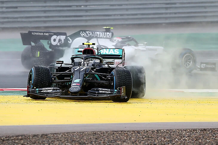Гонка в Турции оказалась максимально неудачной для пилота «Мерседеса» Валттери Боттаса: его развернуло уже в первом повороте (при попытке избежать столкновения с Эстебаном Оконом), затем финн все-таки врезался в болид француза, повредил руль с антикрылом, развернулся еще четыре раза приехал 14-м и уступил титул напарнику.