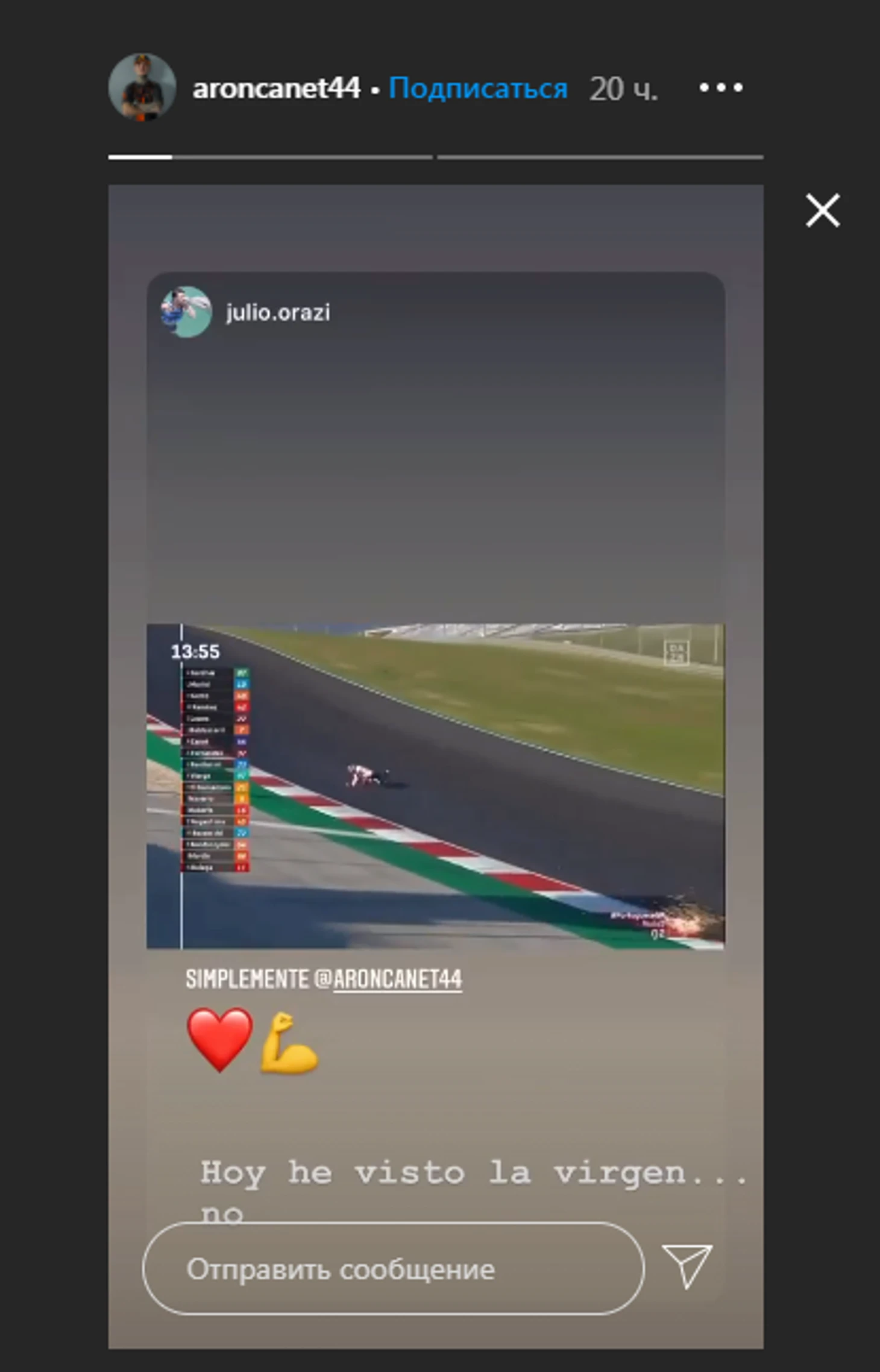 22 ноября 19-летний испанский гонщик Moto2 Арон Канет (вице-чемпион Moto3 2019-го – аналога «Формулы-3») точно до конца жизни будет праздновать как второй день рождения. Просто он сорвал столетний запас удачи: в гонке на последнем этапе сезона в Портимане свалился с байка прямо под колеса соперников – но шесть мотоциклов просвистели мимо, а райдер откатился на обочину невредимым и побежал за своей техникой.
