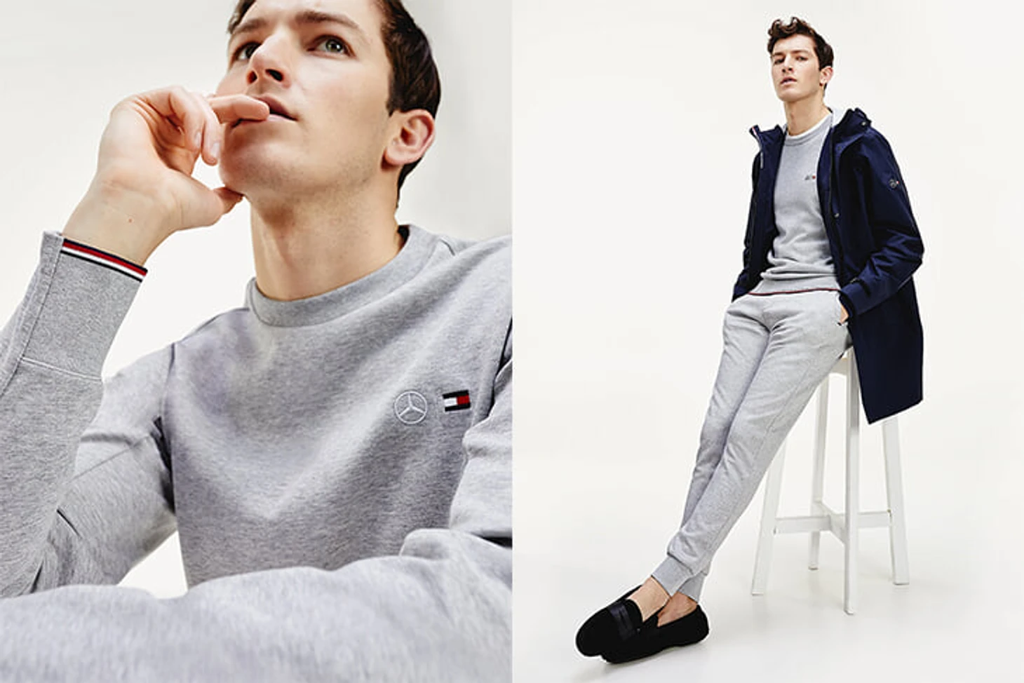 Следующая «модная» коллаборация собрала уже три стороны: «Мерседес», Льюиса Хэмилтона и бренд Tommy Hilfiger. Линейка выглядит все так же сдержанно, а вот у семикратного чемпиона получается нечто кардинально другое: яркие цвета, толстовки, спортивный стиль – заметна тенденция к непринужденности и направлению на молодежь.