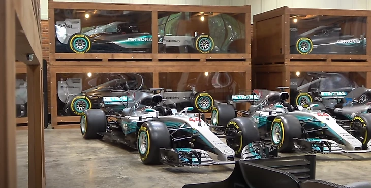 Что же есть на этом складе? Все болиды «Мерседеса» за последние 10 лет – некоторые уже законсервированы в специальных секциях.