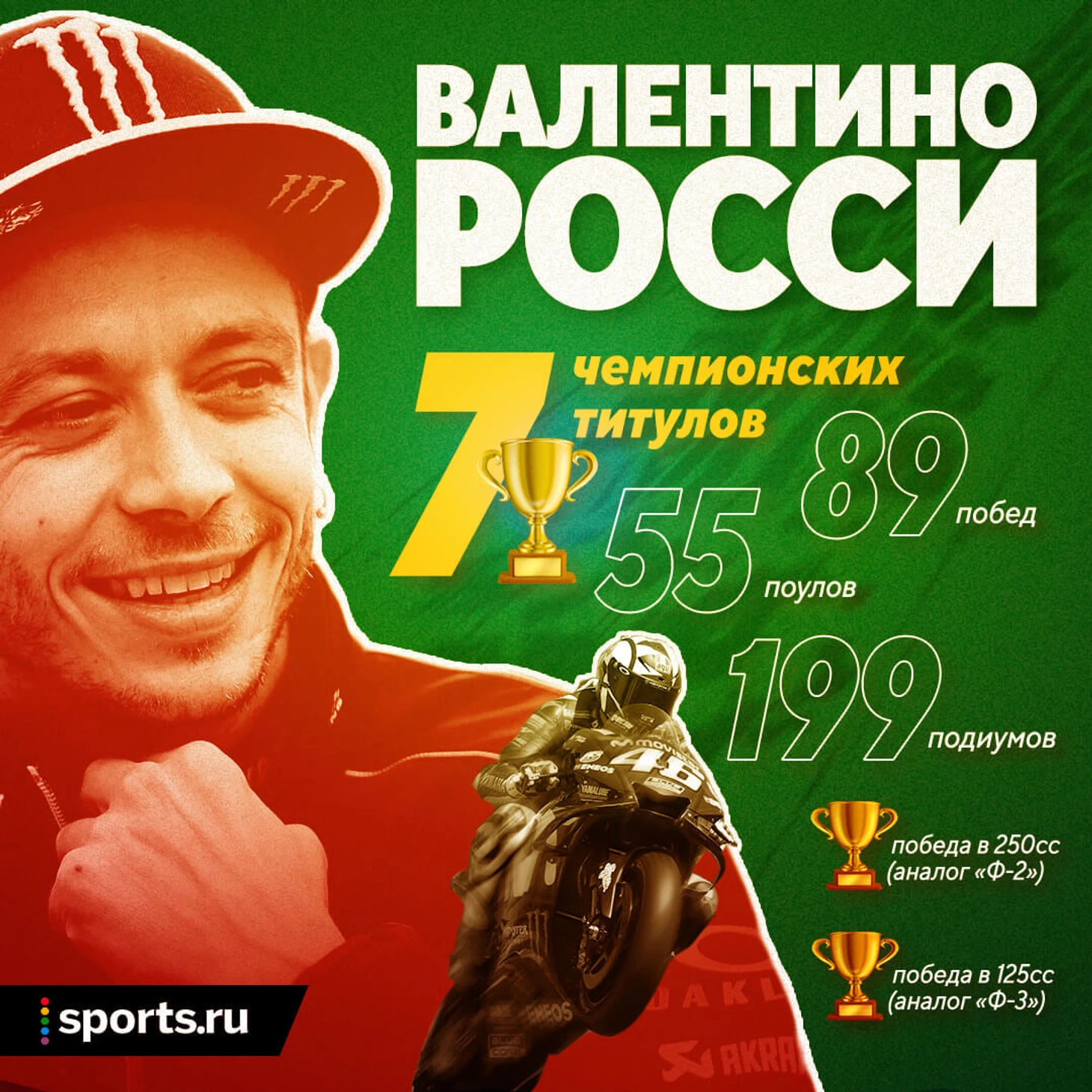 Валентино Росси – монстр: все еще гоняется. Рвется к рекорду, но никогда его не достигнет