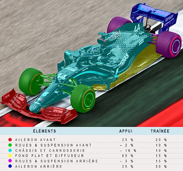При этом 65% всей прижимной силы генерируется днищем, еще 25% – задним антикрылом: спасибо за приблизительный расчет французскому изданию F1i.