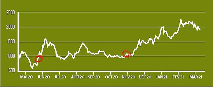 Именно объявление о расширении сотрудничества с «Даймлером» и вызвало сильный интерес регулятора немецкой фондовой биржи – после него акции «Астон Мартин» здорово прибавили в цене. По сравнению с серединой апреля прирост котировок пробил отметку в 60 процентов – просто посмотрите на динамику их стоимости с момента покупки доли Вольффом до передачи дела британцам.