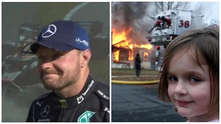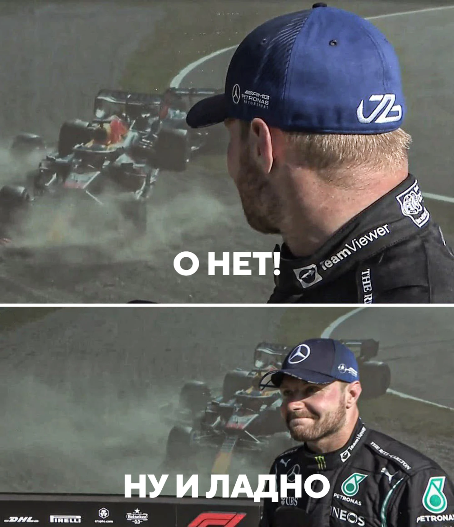 Но больше всего фанаты оценили реакцию Валттери на аварию напарника. Во время интервью, которое по традиции берут сразу после гонки, он впервые увидел кадры столкновения Хэмилтона с Ферстаппеном. В ответ гонщик лишь улыбнулся и тут же стал героем мемов.