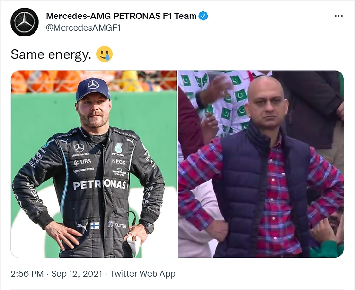 Даже в команде не удержались от шуток над Валттери: «Одинаковая энергия».