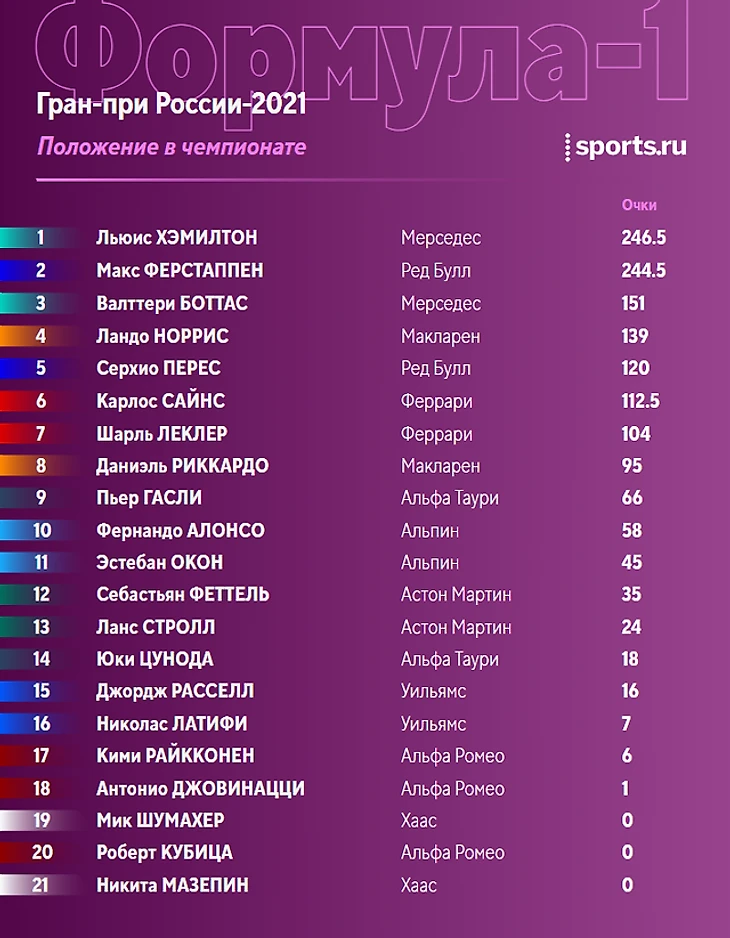 ВТБ Гран-при России виделся беспроблемным реваншем для Льюиса Хэмилтона и «Мерседеса» после итальянской катастрофы и после неудачной сочинской квалификации: Макс Ферстаппен все равно стартовал последним из-за штрафа за столкновение в Монце и установку нового мотора, на прямых (ключевом аспекте на трассе в Сочи) W12 вез соперникам чуть ли не по секунде с круга, да и начальная позиция №44 выглядела не такой уж отвратительной. Все-таки на «Сочи Автодроме» даже выгодно начинать заезды не с поула из-за могучего слипстрима (и старт Карлоса Сайнса вновь это доказал), потому четвертое место Льюиса не выглядело приговором – казалось, он наберет намного больше очков, чем Ферстаппен, и уйдет в отрыв.