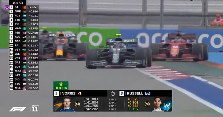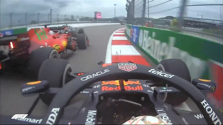 Ферстаппен вообще очень бодро прорывался – не стеснялся рисковать до невероятного уровня. Например, когда нагнал Шарля Леклера в битве за 12-е место – разминулся со стеной буквально в паре сантиметров.