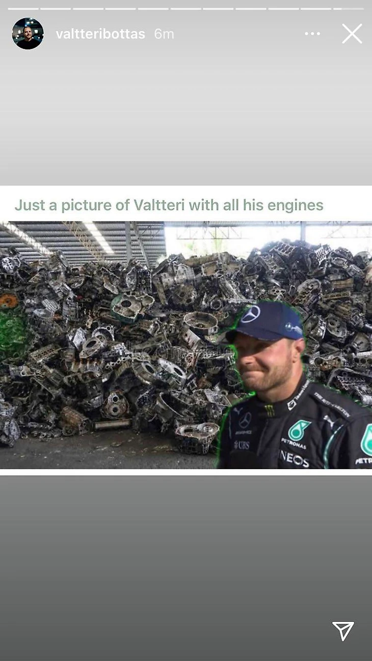 В России, похоже, семикратные чемпионы попытались повторить фокус Монцы и отправили Валттери на 17-е ради сдерживания прорыва Макса с последней позиции. И попытались оправдать все желанием просто «воспользоваться тактической возможностью пополнить запас моторов» – даже сам №77 не выдержал и красноречиво прокомментировал момент в сториз в инстаграме.