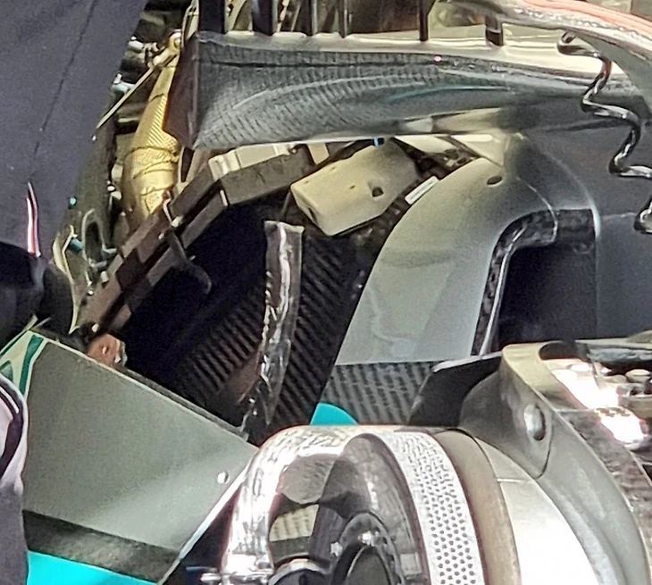 И в наших симуляциях всегда использовали отверстия и радиаторы побольше, чем в W13. Думаю, у «Мерседеса» есть пара маленьких трюков – например, интеркулер. Очень-очень изящный. Это воздушно-водяной интеркулер, но теперь он немного другой. Благодаря ему как раз машину можно скомпоновать теснее, чем способны все остальные.