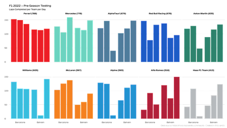 По сводным результатам с обеих обкаток лучшими оказываются «Феррари» (788 кругов) и «Мерседес» (778). У «Ред Булл» поменьше – 678 – но большинство других команд наездили еще меньше.