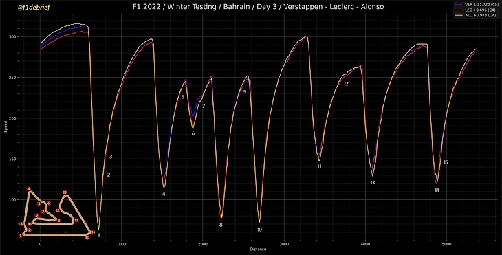 Сравните телеметрии Леклера, Ферстаппена и Фернандо: