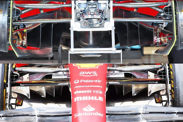 Эта новинка говорит о пересмотре и пересборке практически всех воздушных потоков под днищем – «Феррари» явно нашла возможность немного увеличить генерирование прижимной силы с учетом остальных поправок.