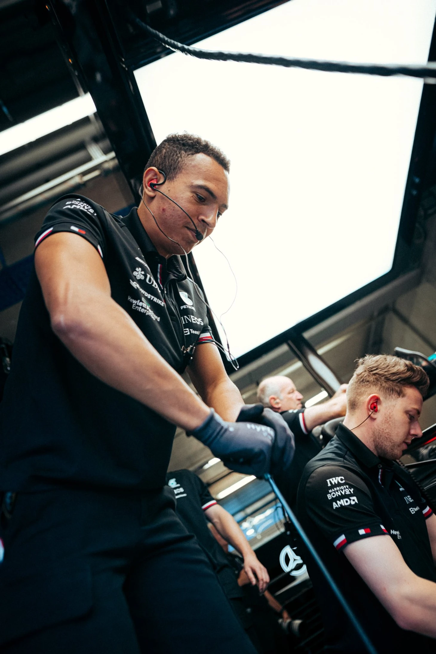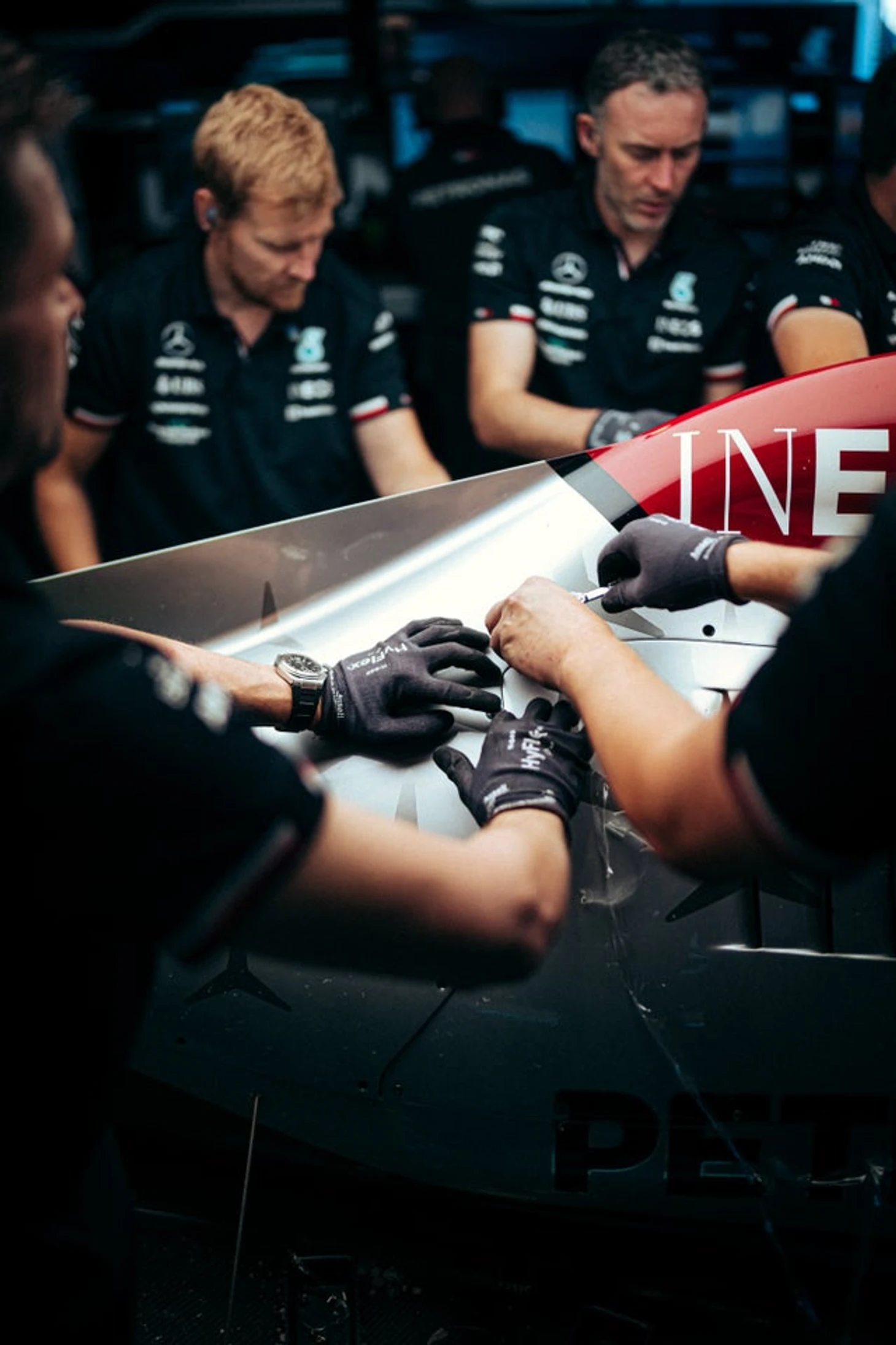 Перед стартами требовалась проверка двигателей на обоих болидах, но с собой «Мерседес» возит только один испытательный стенд – и команда обратилась за помощью в «Астон Мартин» (клиентам немецкой компании). Проверка шла параллельно с остальными работами и длилась три часа – без поддержки британцев кто-то из пары Хэмилтон-Расселл мог бы остаться без мотора.