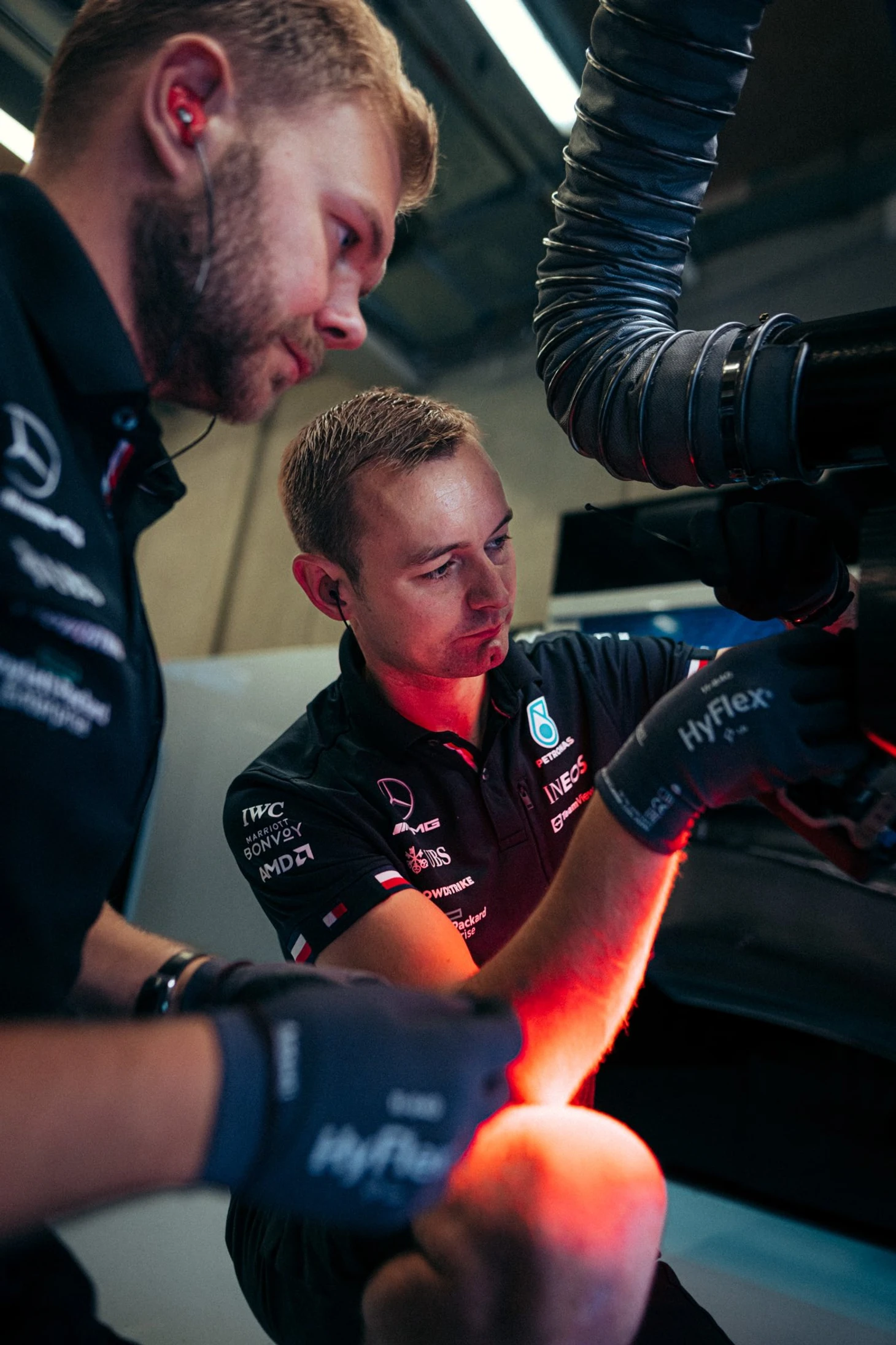 Расселла выпустили через 10 минут после старта практики, а вот Хэмилтон успел только на последнюю четверть. Льюису долго ставили старое шасси и коробку передач (в результате нехватки запчастей новую трансмиссию получил только Расселл): из-за этой замены пришлось полностью разобрать силовую установку, чтобы перенести ее на другую основу – то есть еще и заново собрать.
