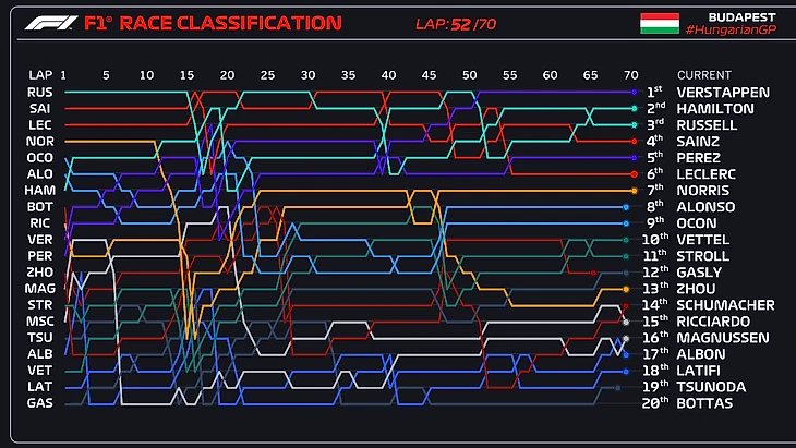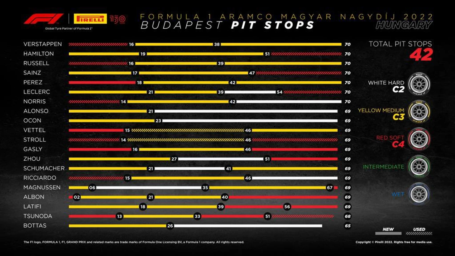Карлос Сайнс и Шарль Леклер прессинговали лидера Джорджа Расселла, и сперва Скудерия испортила гонку испанцу: передержала его на пит-стопе (3,6 секунды, спойлер – второй был даже 4,7 секунды!) и вывела вперед монегаска. №16 хотя бы оправдал ситуацию и обогнал «Мерседес» в схватке за первое место, но затем смелый по таймингу (сразу после утихания легкого дождя) пит-стоп «Ред Булл» так напугал Скудерию, что алые стратеги зазвали Леклера и установили ему самый жесткий состав – «хард.» С ним в этот уик-энд провалились все команды: еще с утра называли «мусором», а в гонке в момент остановки Шарля весь пелотон уже видел кошмарный темп «Альпин» и «Хаас» с белыми ободками. Да чего там, «Ред Булл» после ужасного установочного круга забросил идею использования «харда» и поставил «софт».