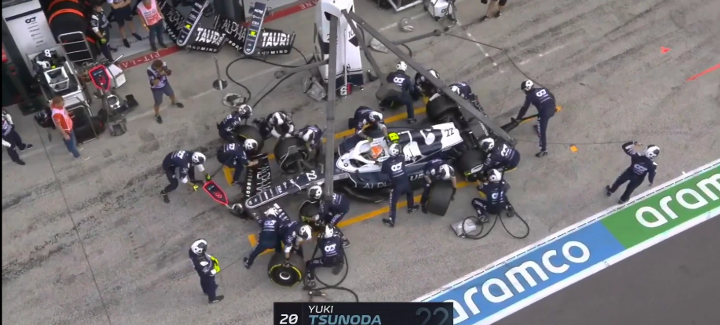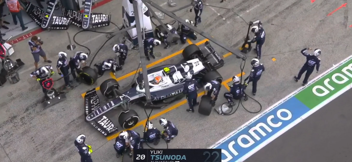 Пожаловался на недокрученное колесо и начал подготавливать сход, но команда передала ему, что с колесами все в порядке и можно продолжать. Японец и поехал – но в боксы, чтобы все-таки поменять покрышки на всякий случай.