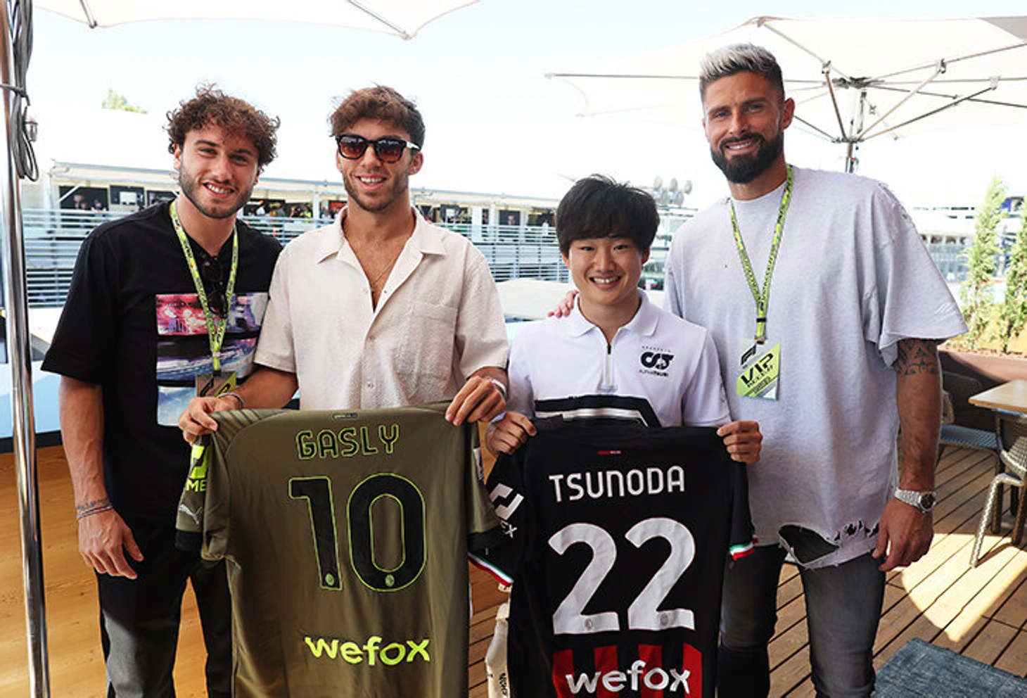 ...И Давиде Калабрия с Оливье Жиру и подарками для пилотов «Альфа Таури».