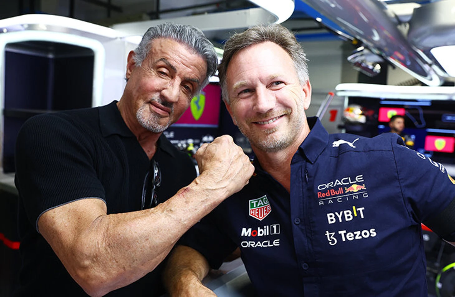 И, наконец, Сильвестр Сталлоне угрожает демонстрирует отличную форму Кристиану Хорнеру, руководителю «Ред Булл».