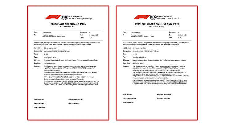 В ФИА без сомнений знают о пирсинге Хэмилтона. И во время этапа в Бахрейне, и в Саудовской Аравии Федерация выкатывала документ о нарушении Льюисом все того «приложения L, главы три, статьи пять Международного спортивного кодекса ФИА» – ношение украшений. Но оба раза расследование заканчивалось заготовленной речью: «Стюарды выслушали представителя команды и изучили медицинский отчет врача «Мерседеса», который запросил исключение по статье 5 по медицинским соображениям. Стюарды проконсультировались с медицинским делегатом ФИА, который так же ознакомился с медицинским отчетом, осмотрел гонщика и согласился с заключением врача.
