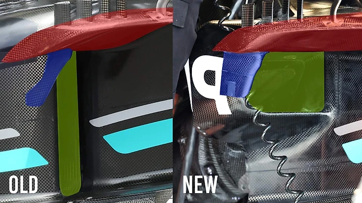 Под ним, кстати, нет особенных перемен: технический эксперт F1 TV и бывший механик «Супер Агури» Альберт Фабрега указал, где переделали систему охлаждения:
