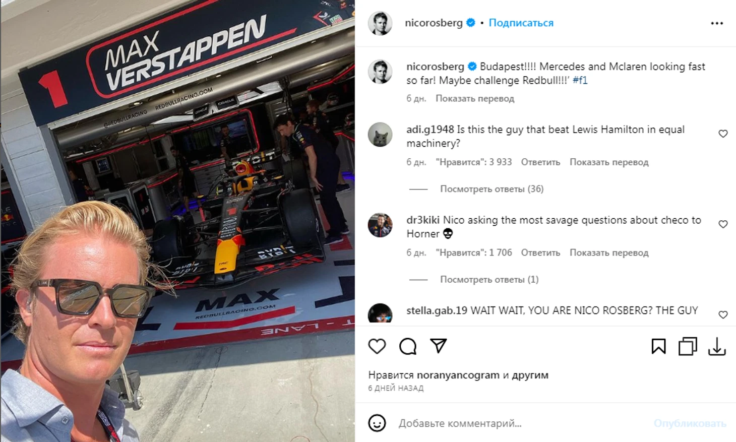 «Да, это некруто, совсем, – рассуждал Росберг на Sky Sports F1. – Если во время уик-энда я выкладываю фото с пит-лейн, с машиной или чем-то таким, то этот болид выступает плохо. Мне надо быть осторожнее. Нужно нажать на кнопку «пауза». Не буду больше этим заниматься.