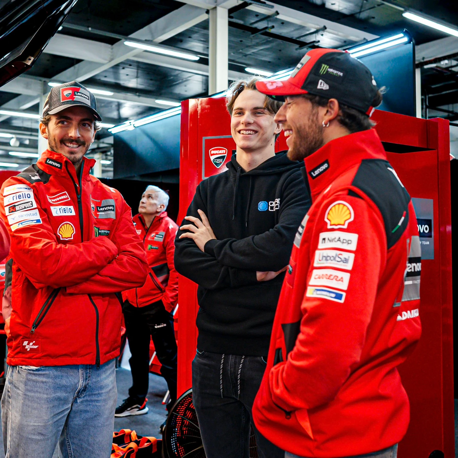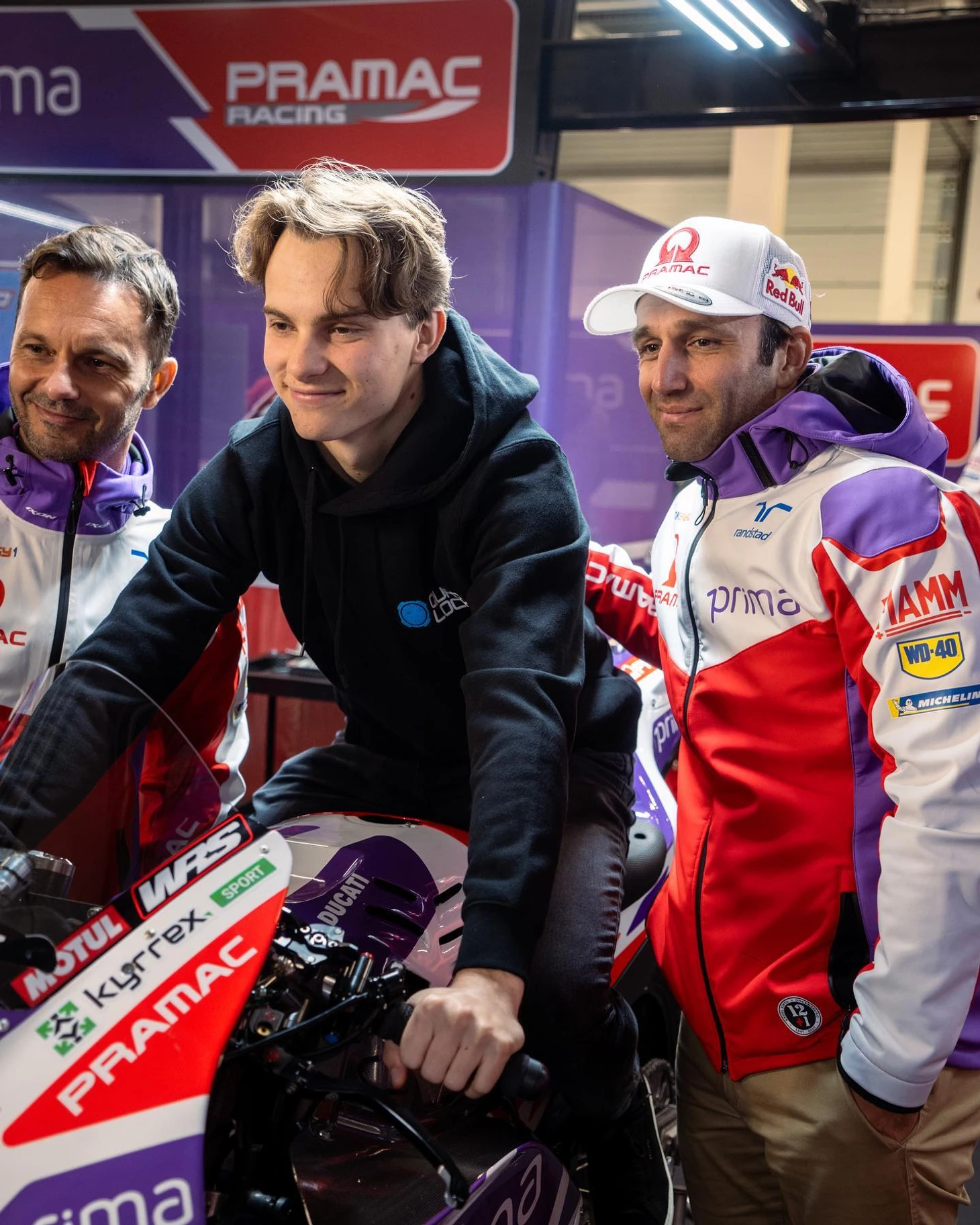 Помимо фоток с Йоаном Зарко, Марком Маркесом, Джеком Миллером, Франческо Баньяя и Энеа Бастианини в боксах «Прамак» его пустили за гоночный «Дукати»: