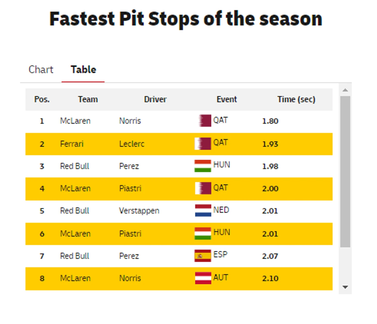И достижение «Макларена» становится еще эпичнее, если взглянуть на историю всех пит-стопов быстрее двух секунд – с «Ред Булл» тягались только избранное количество раз!