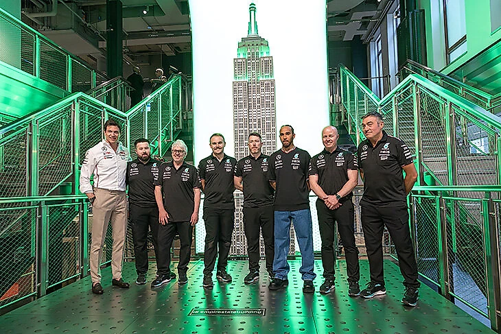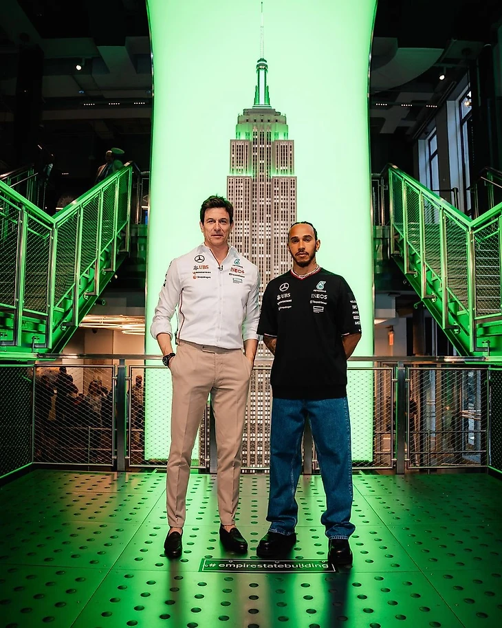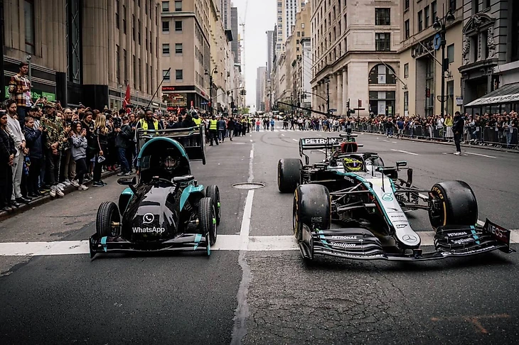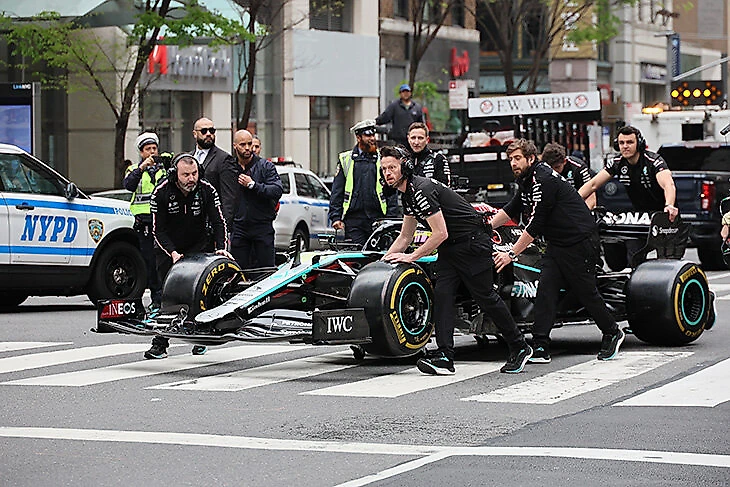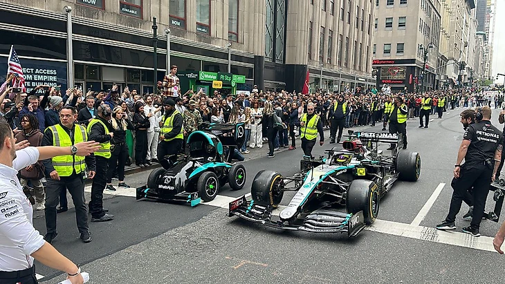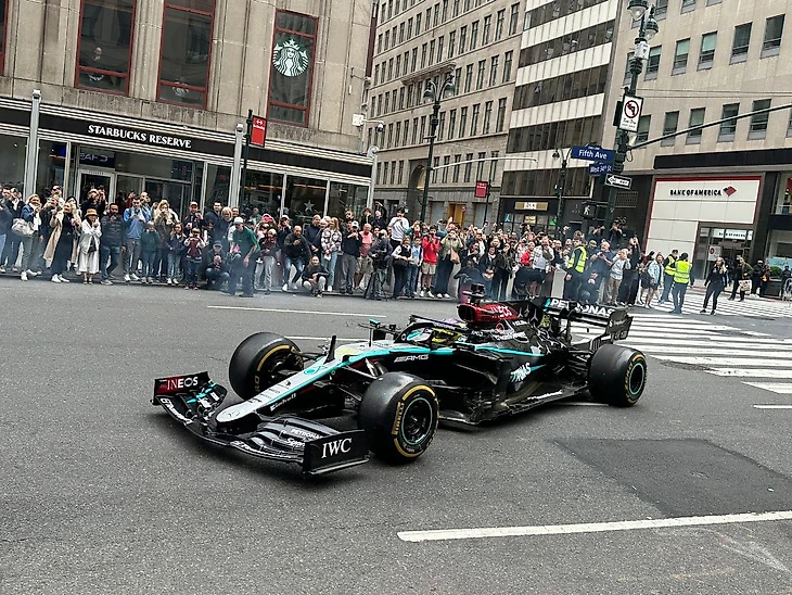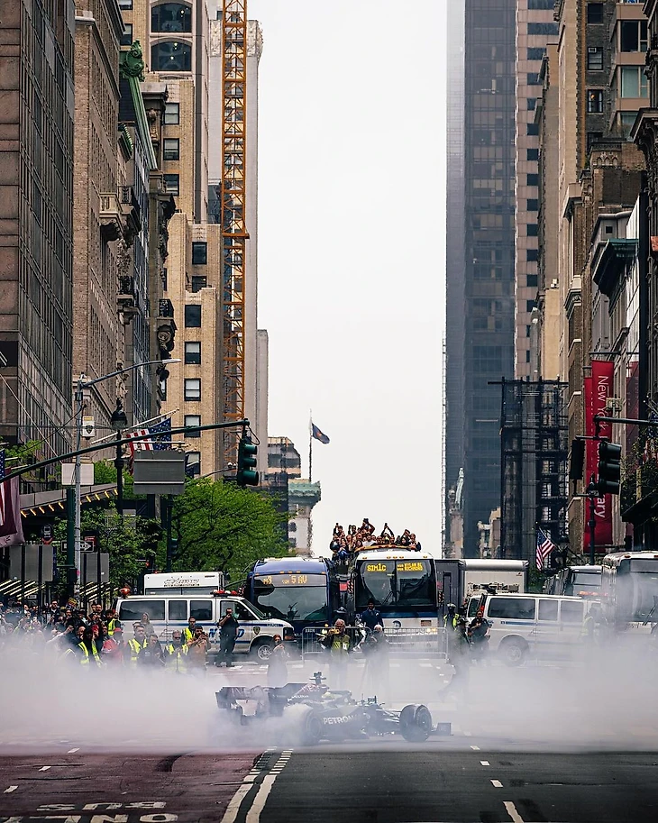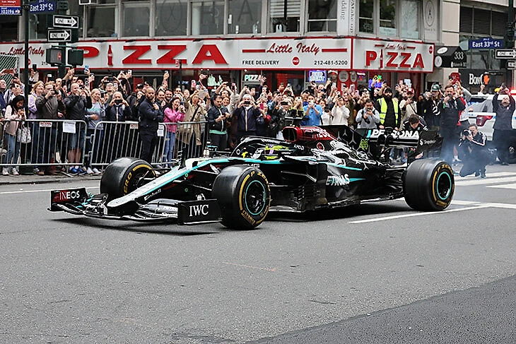 Удивляло, почему такая мощная компания разместилась на болиде почти незаметным объемом? Просто «Мерседес» теперь пошел другим путем – вместо продажи наклейки теперь устраивает вечеринки с шоу-заездами Льюиса Хэмилтона на W12 2021 года. Прямо на Пятой Авеню под «Эмпайр Стэйт Билдингом» – перекрыт весь центр «Большого яблока»!