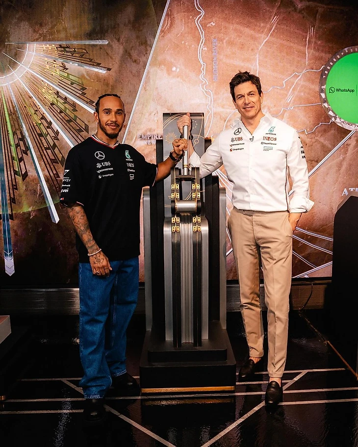А накануне стороны закатили презентацию и вечеринку – «Мерседес» благодарил спонсора за его деньги, Тото Вольфф и Льюис хвалили компанию за технологии и удобство переписок, тусовались и позировали: